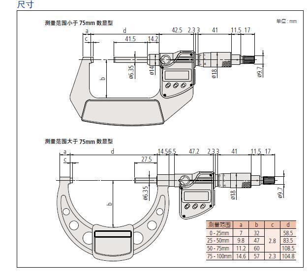 l 分辨率为0.001mm,测量范围为0-25mm。