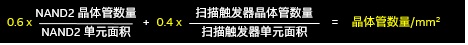 他认为,要准确反映晶体管密度可以采用如上公式。因为这个公式用了两个非常重要的逻辑概念,一个NAND单元,一个是比较复杂的扫描触发器逻辑单元,这两个概念用来更加准确的计算逻辑晶体管的密度。